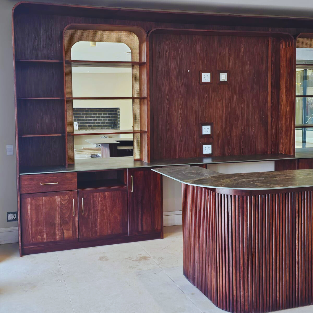 Our team is dedicated to bringing your vision to life. Let us help you craft a one-of-a-kind Slatted Kiaat Bar that reflects your unique style.