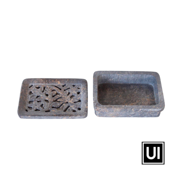 GREY SOAP STONE CUTOUT SOAP DISH LOOSE LID 4X11CM