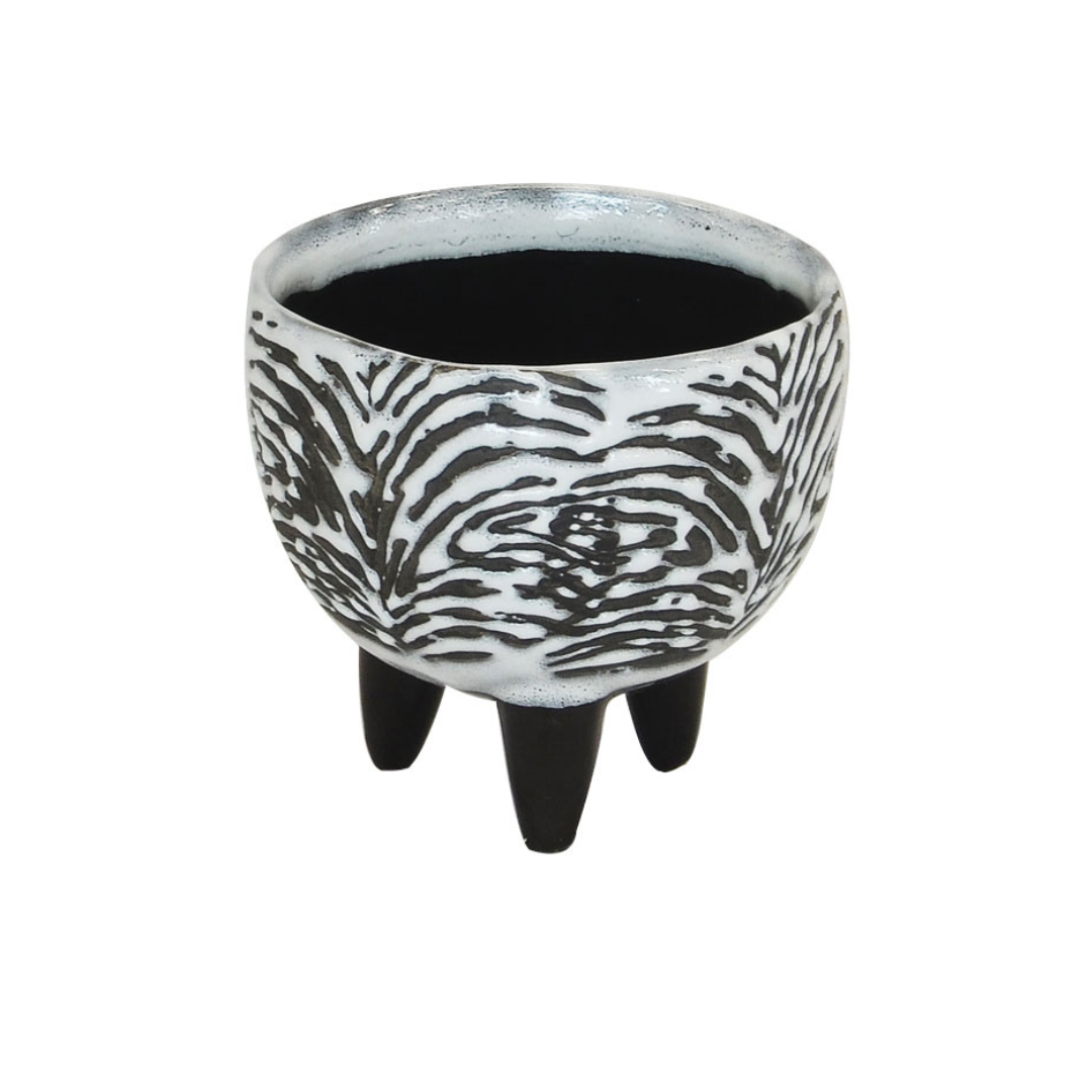 Add a touch of modern whimsy to your interior decor with the Ceramic Zebra Footed Vase, a unique and stylish addition to any room.