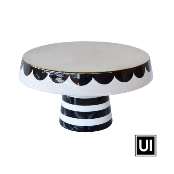 Large black and white cake stand scallop edge