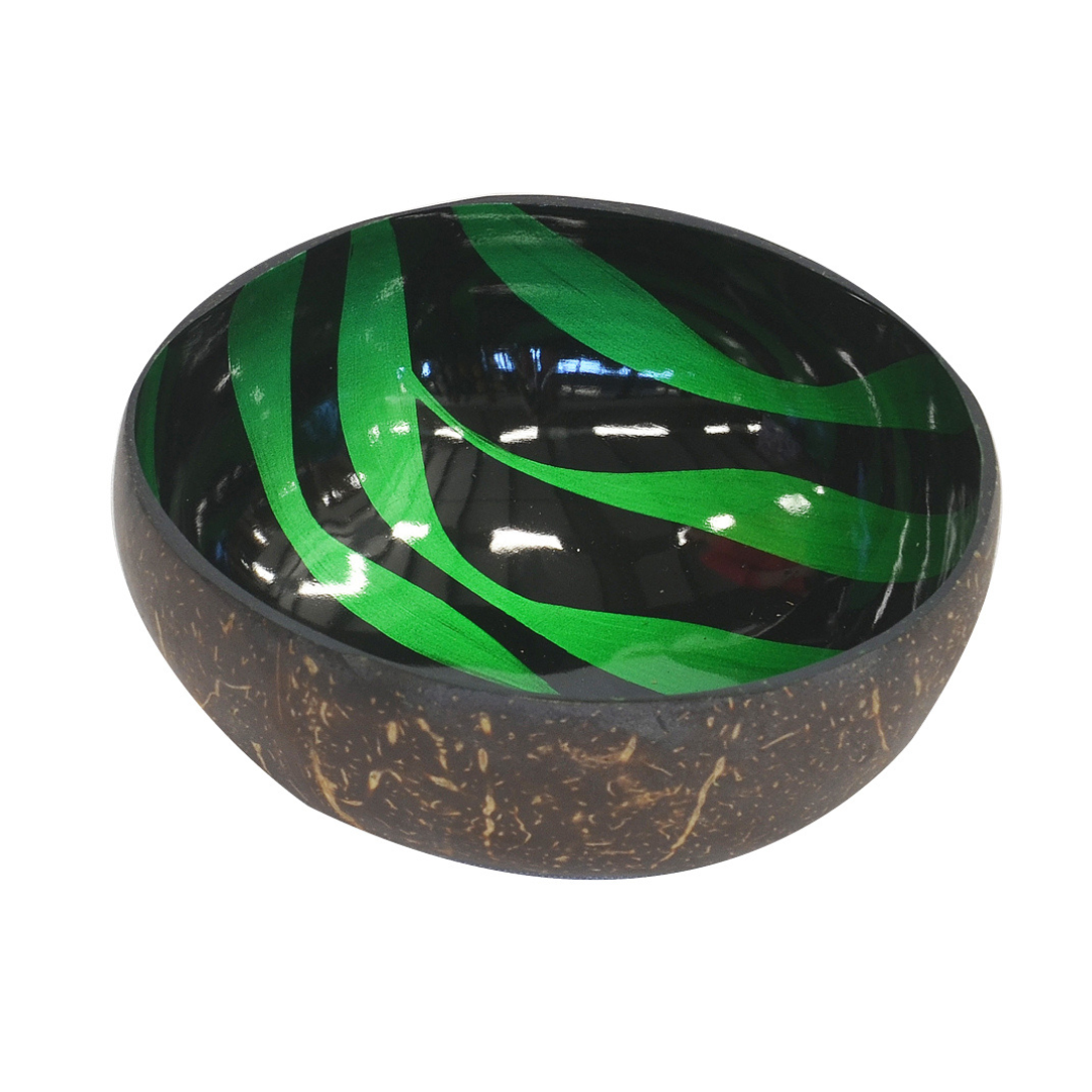 Elevate your table setting with the vibrant Mop Coconut Bowl Zebra Green, a unique and stylish serving piece that combines natural charm with modern flair.