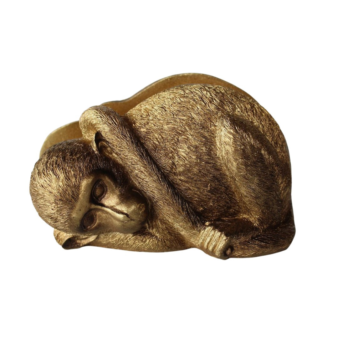 Introducing our Gold Monkey Napkin Holder, the perfect addition to any dining table. This beautifully crafted holder adds a touch of elegance with its stunning gold finish and unique monkey design. Keep your napkins organized and your table setting elevated with this functional and stylish piece.