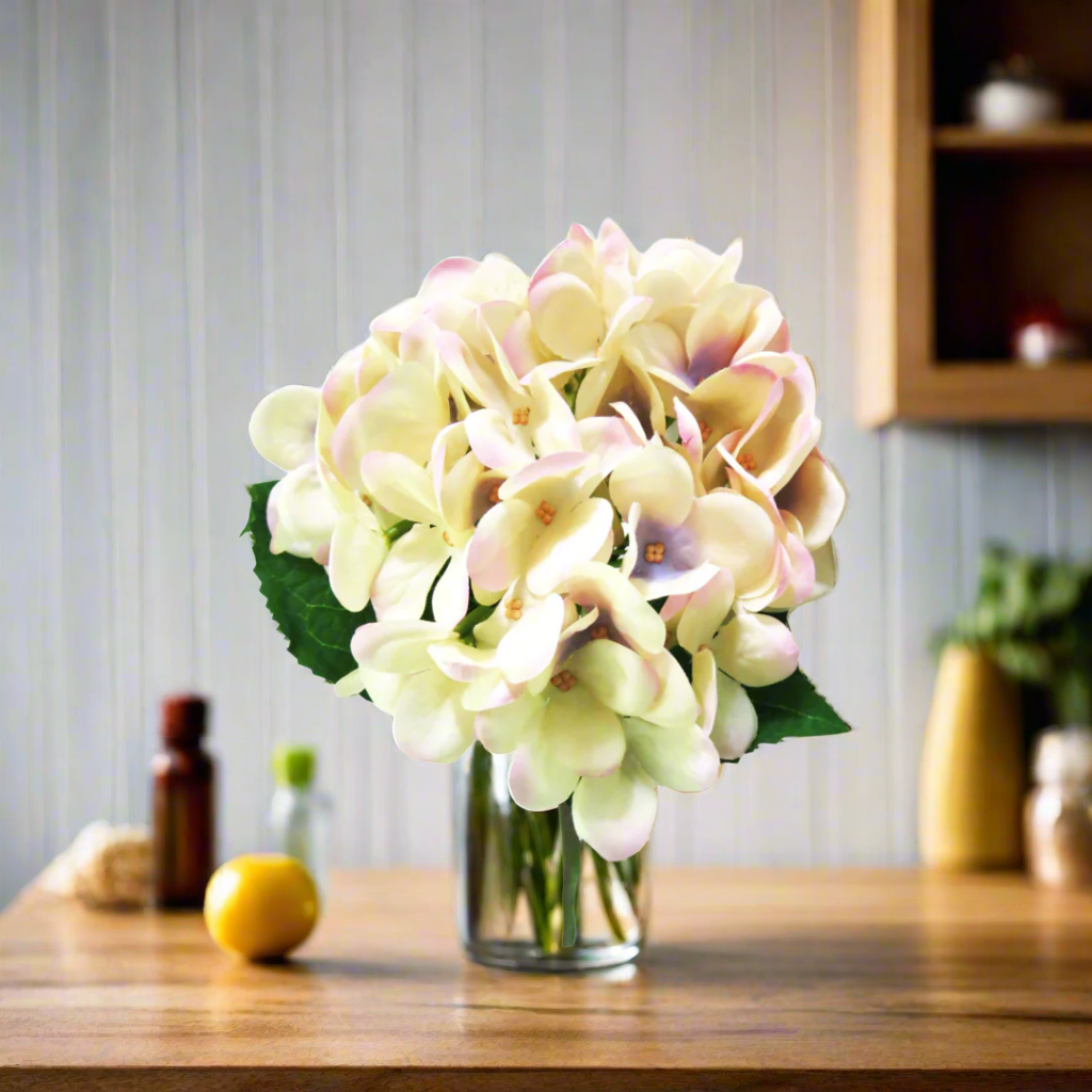 Experience the elegance of our Hydrangea Pastel Perfection artificial flowers, expertly crafted to capture the beauty of real blooms.