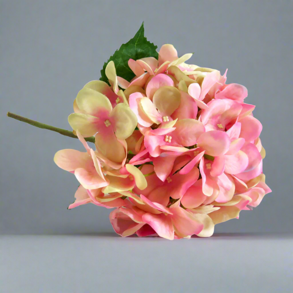 Soft, Romantic Colors: The delicate pink and cream hues of our Hydrangea Pink Puff artificial flowers evoke a sense of soft, romantic beauty.