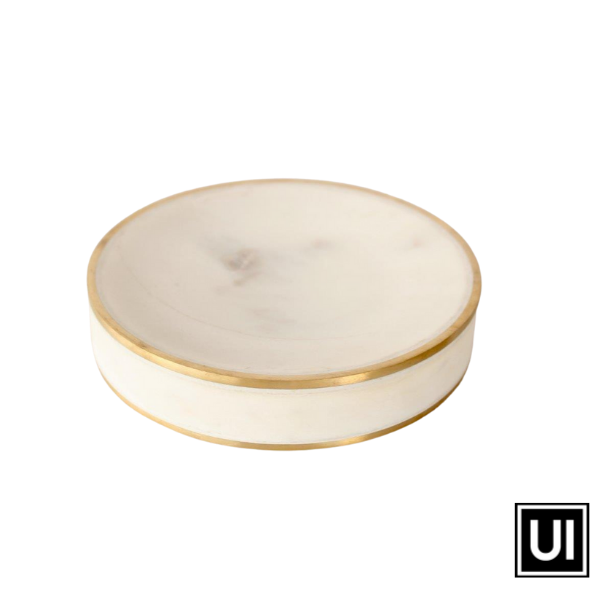 ROUND MARBLE SOAP DISH BRASS EDGE 13CM DIAM