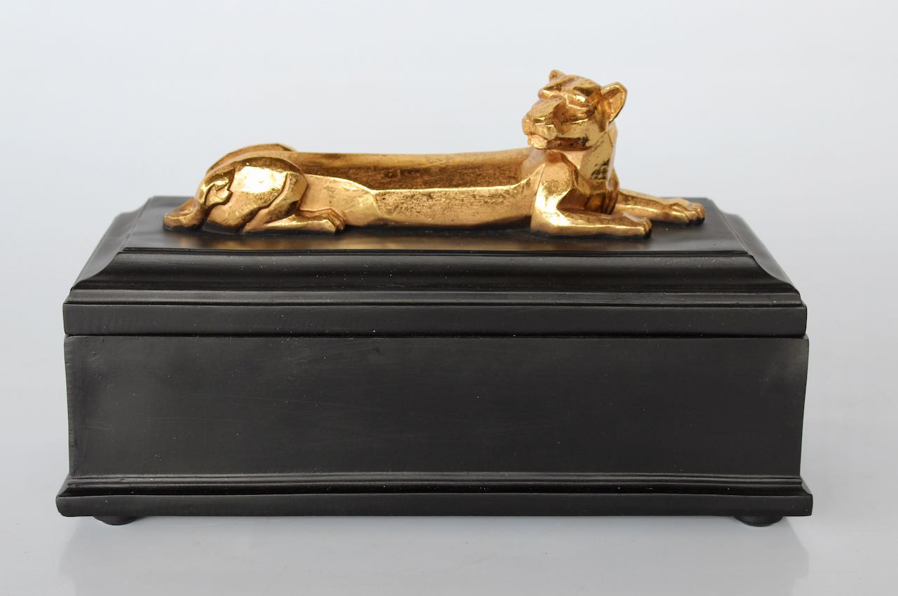 This exquisite GOLD LIONESS ON BOX is crafted from high-quality materials and features intricate detailing. The elegant design of the 16x26x12cm box adds a touch of sophistication to any room. Perfect for displaying on a coffee table or shelf, this piece is a beautiful addition to any home decor.