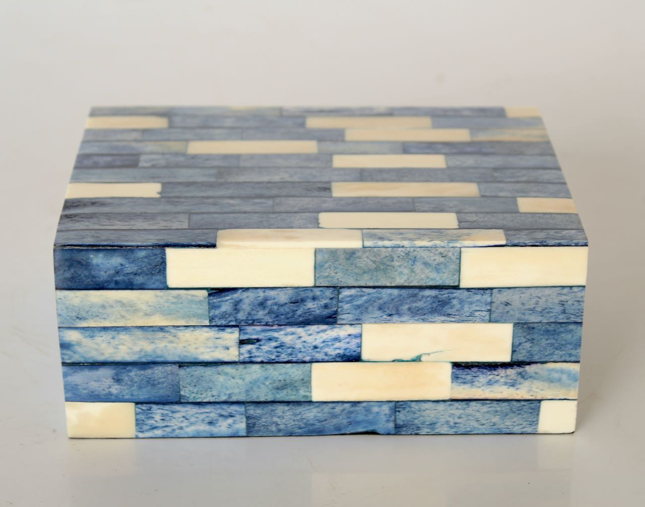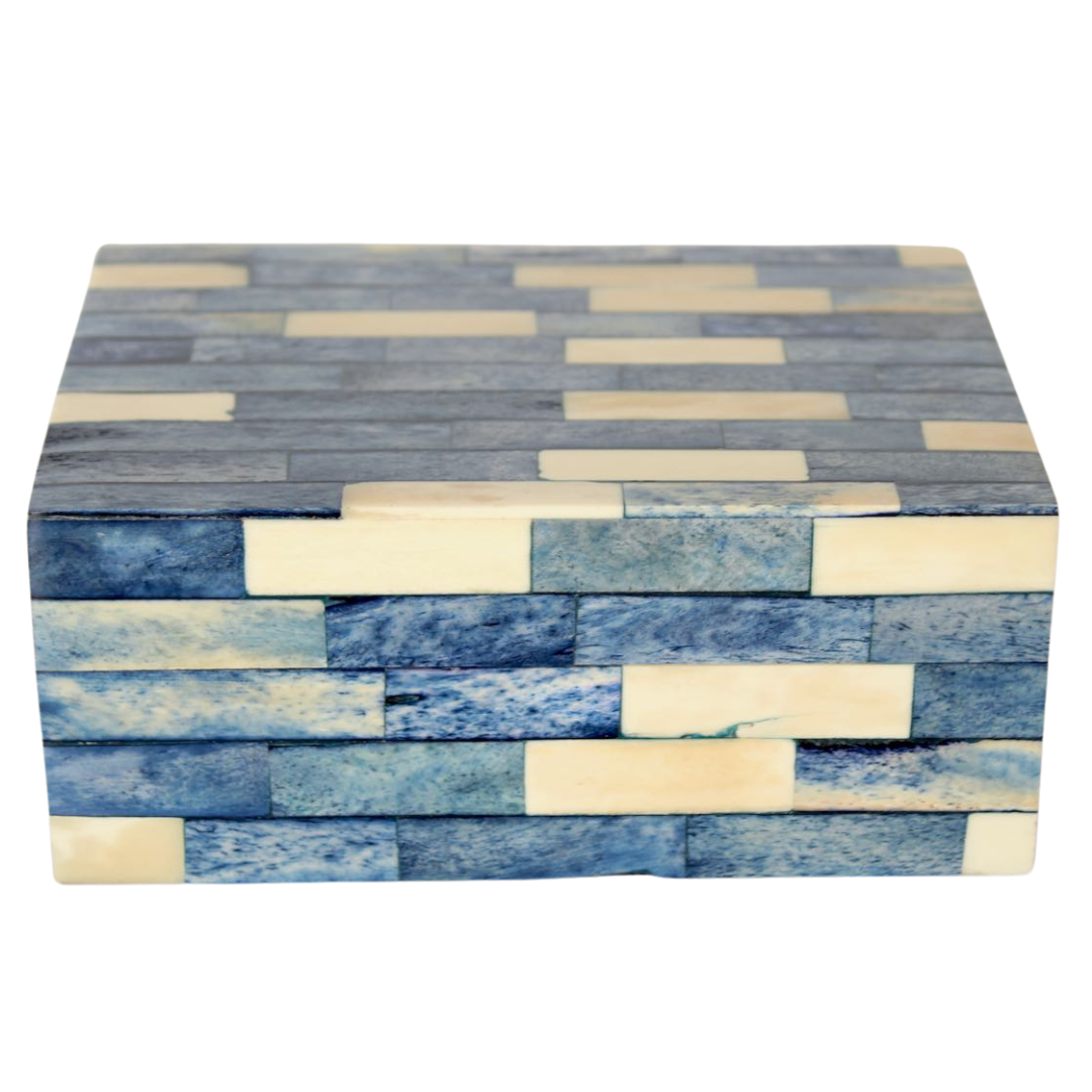 LARGE BLUE & WHITE BONE BOX 8X18.5X14.5CM