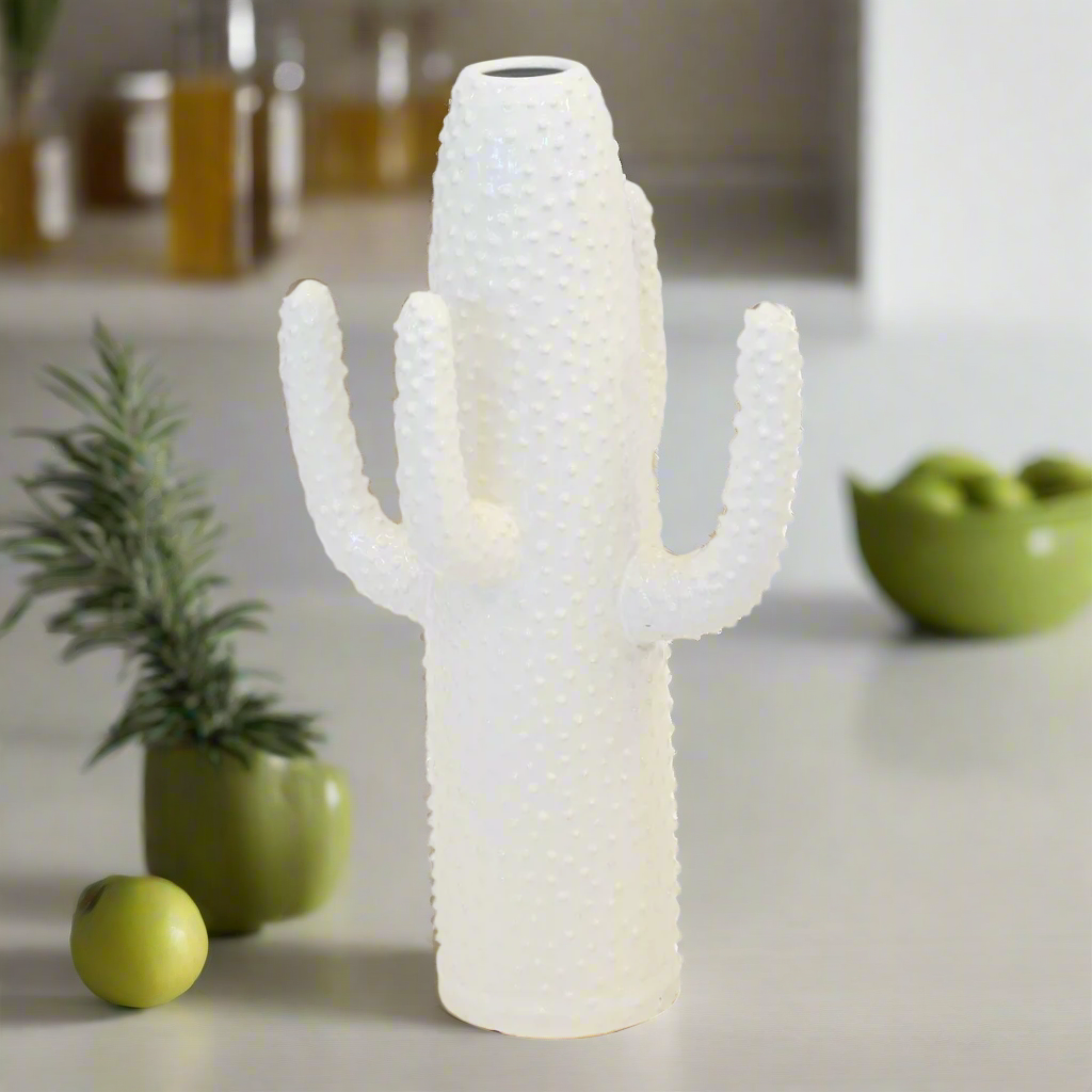 Elevate your interior decor with the stunning Large Ceramic Cactus Vase, expertly crafted from high-quality ceramic porcelain in a pristine white finish.