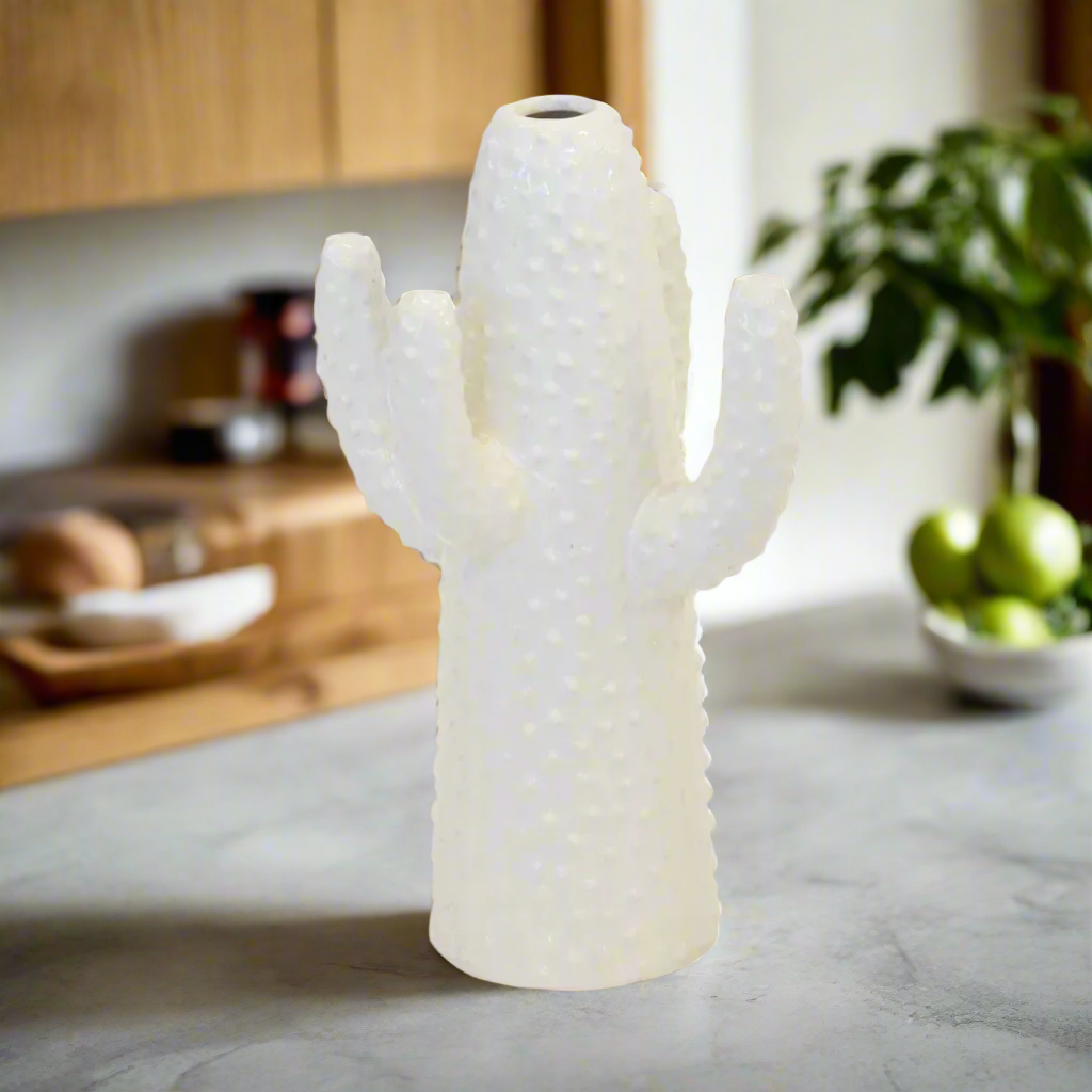 Add a touch of southwestern charm to your home with the charming Medium Ceramic Cactus Vase, expertly crafted from high-quality ceramic porcelain in a crisp white finish.