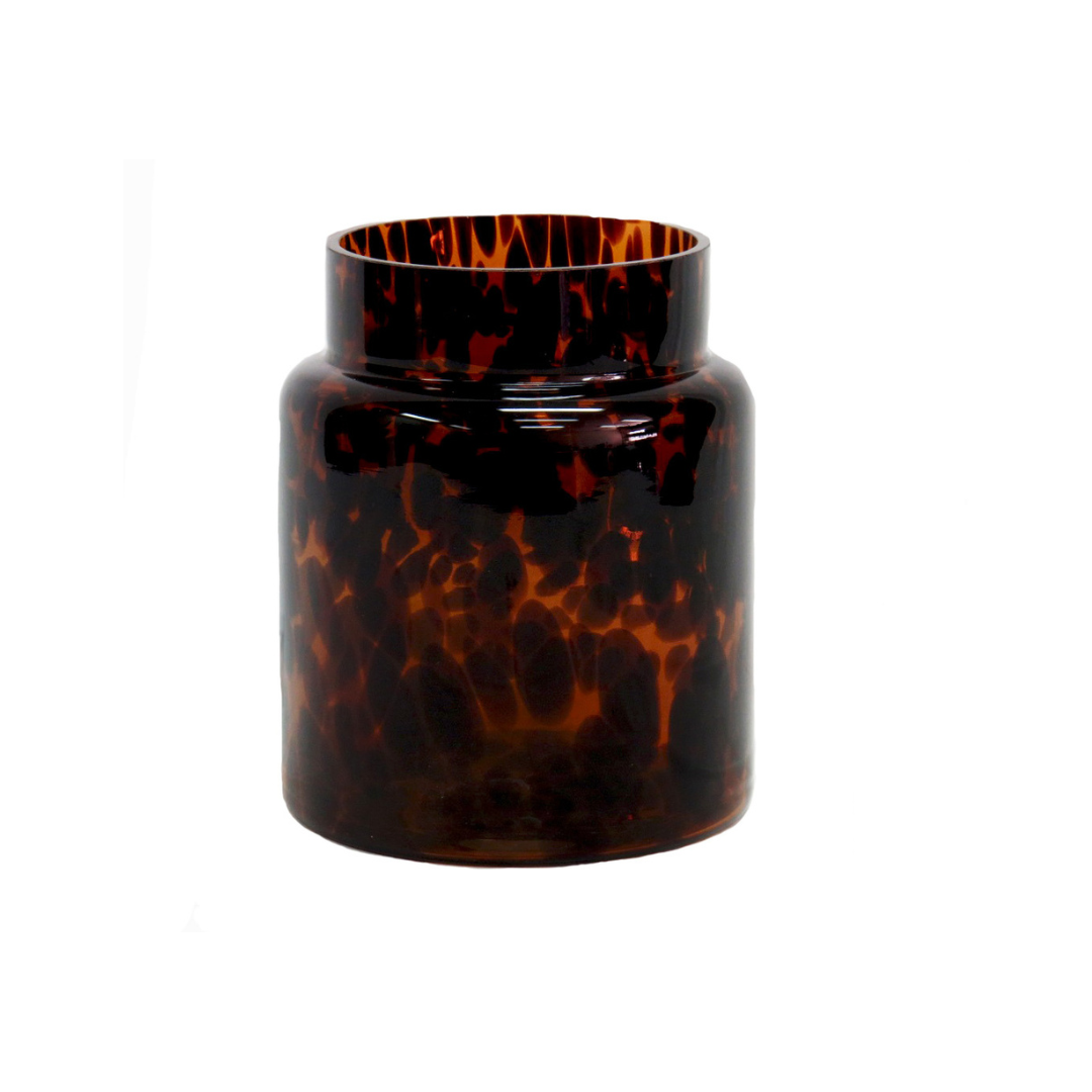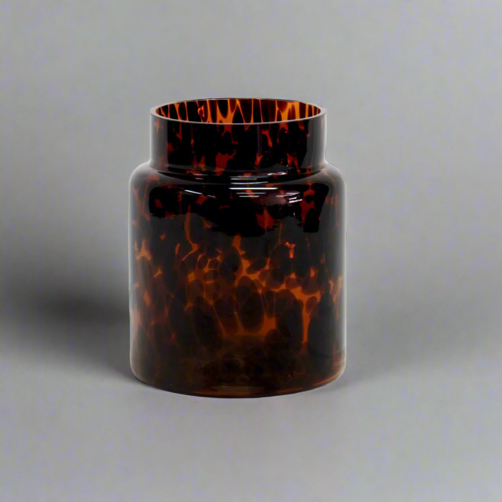 Elevate your home decor with the stunning Elemi Jar, featuring a gloriously shaped container with a unique tortoise shell glass design.