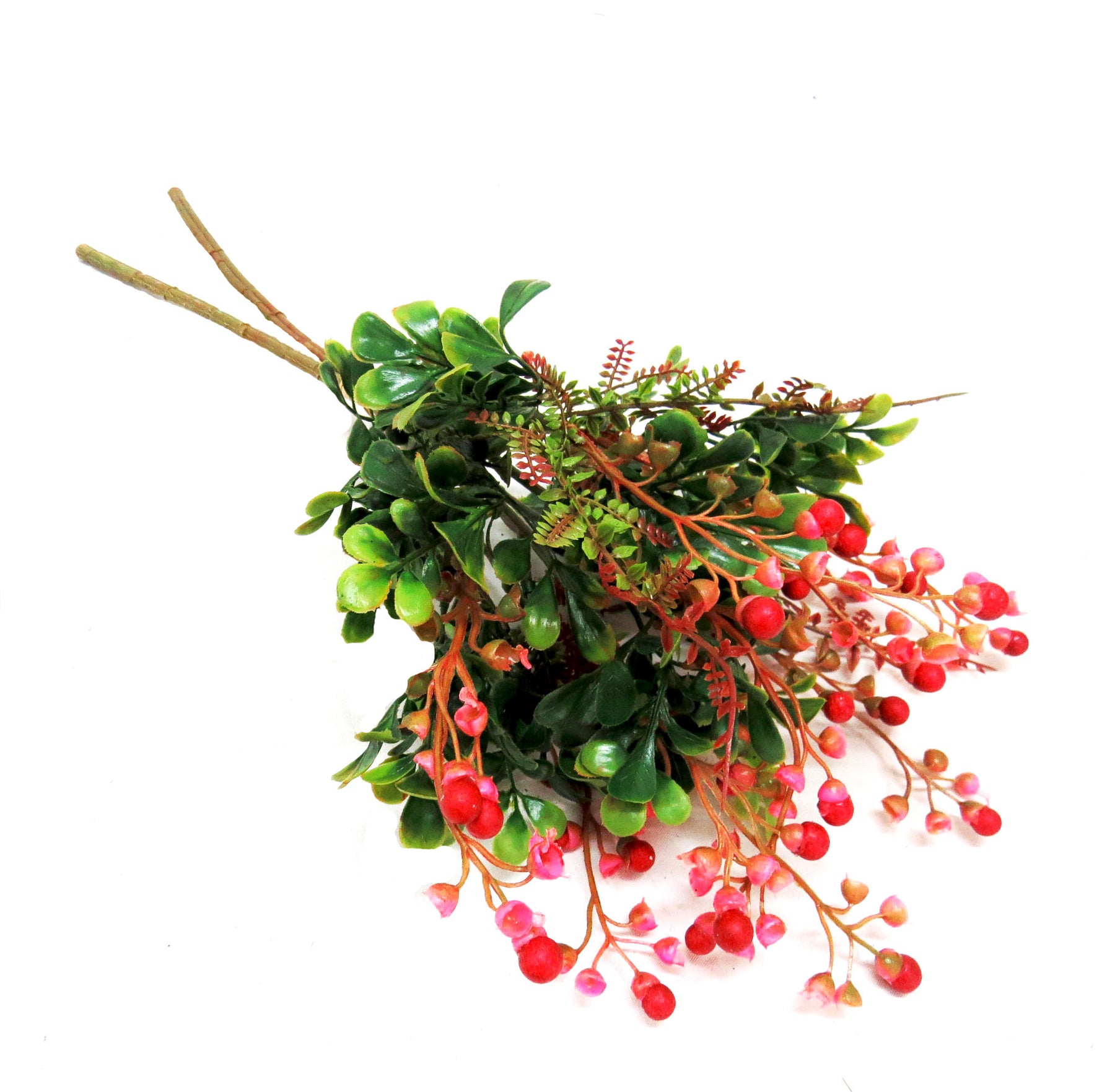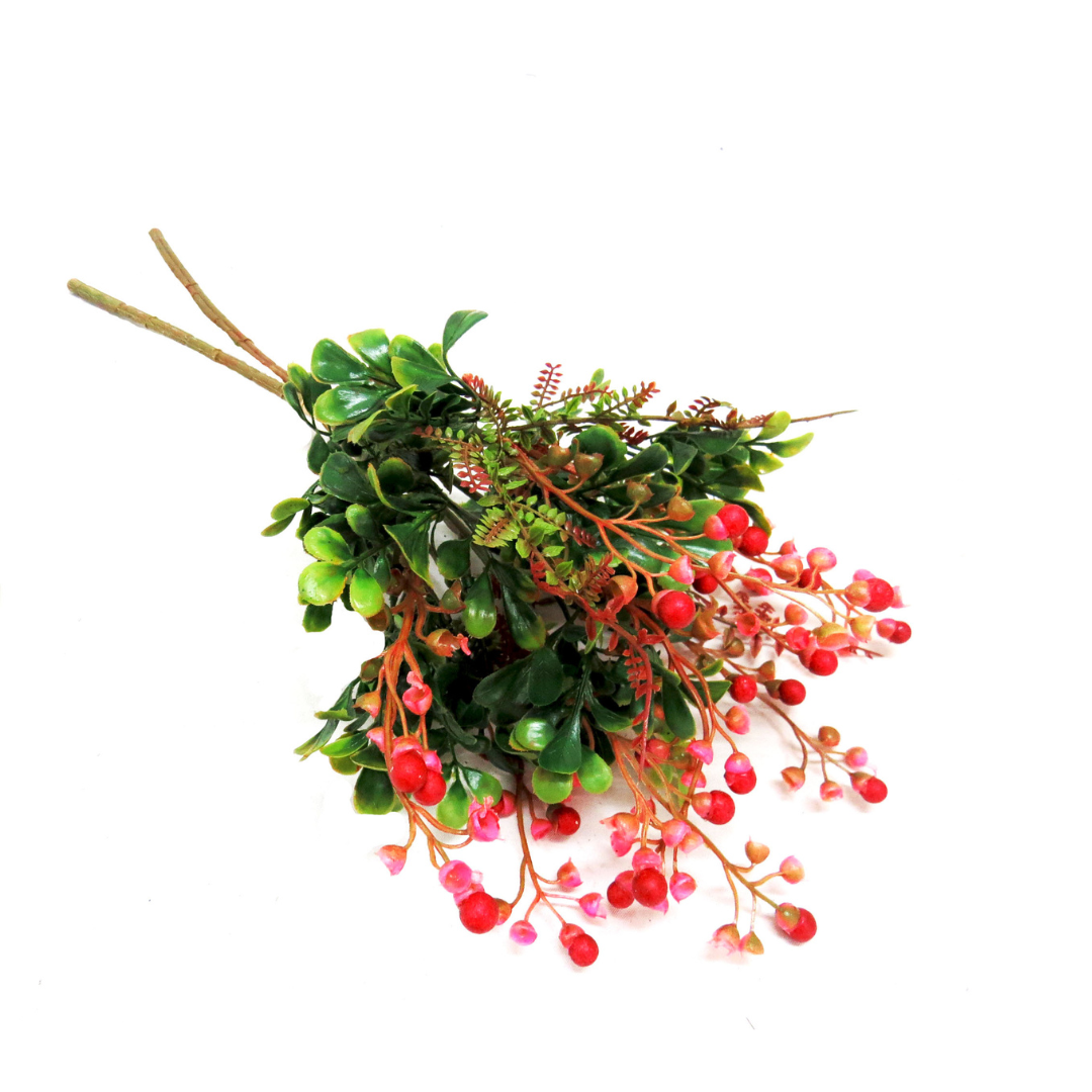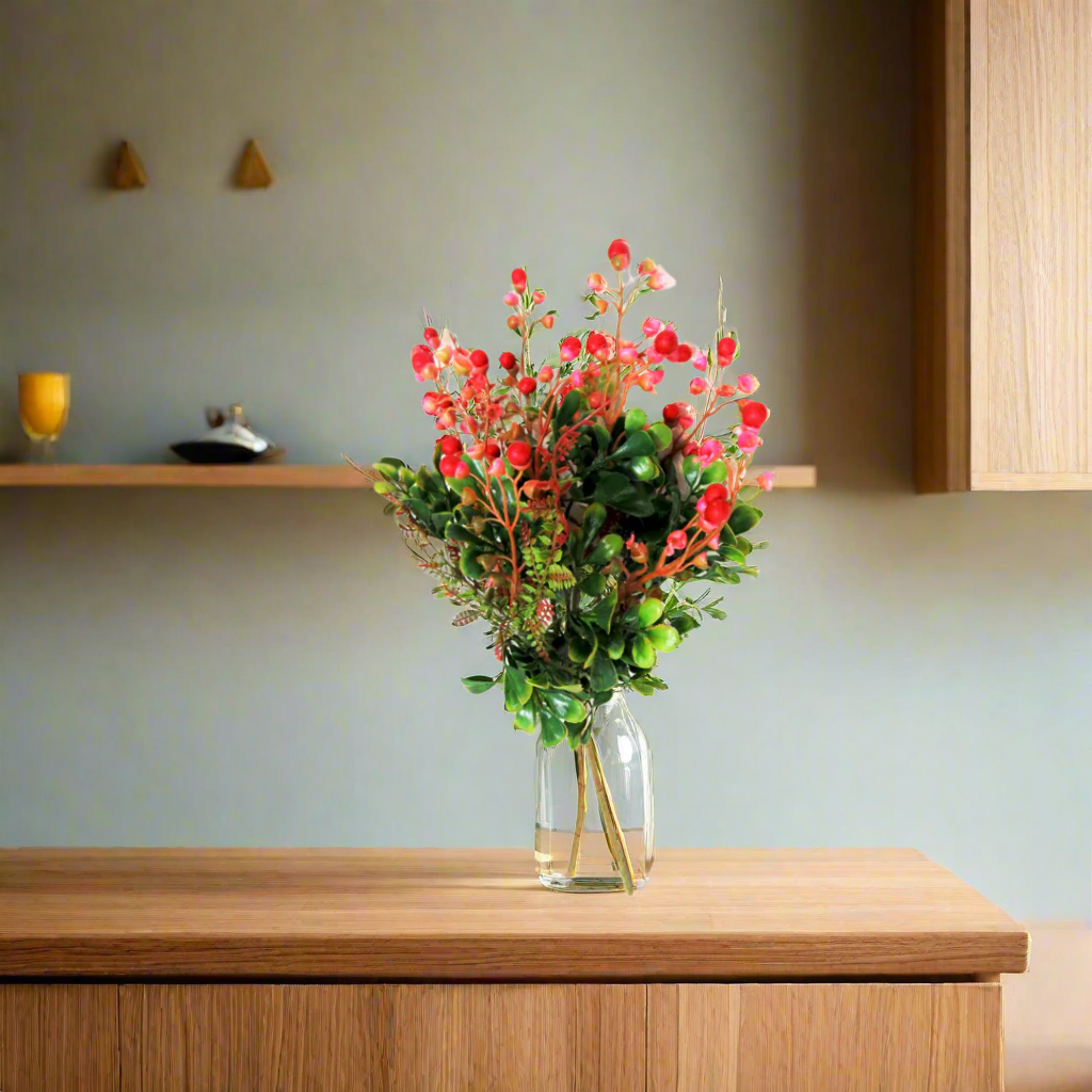 Add a touch of natural beauty to your home or office with the breathtaking Beauty Berry Bunch! This stunning 44cm arrangement boasts delicately shaded pink berries, lush green leaves, and tiny ferns, expertly crafted with high-quality artificial materials to ensure a flawless display.