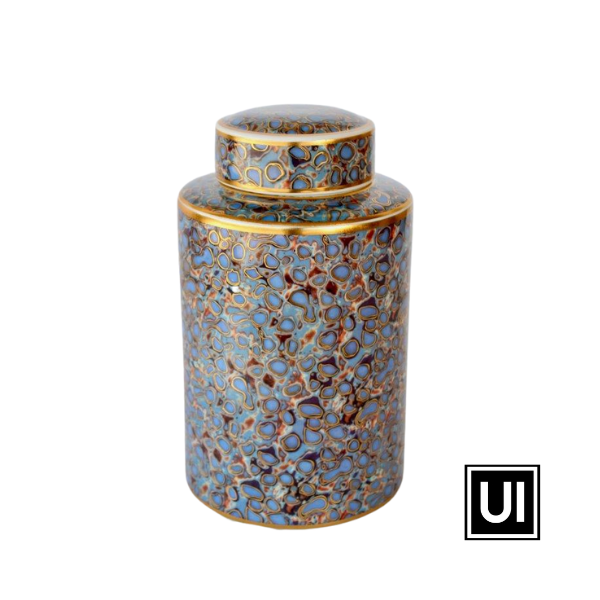 GOLD, BLUE MULTI COLOUR JAR WITH LID 30X19CM