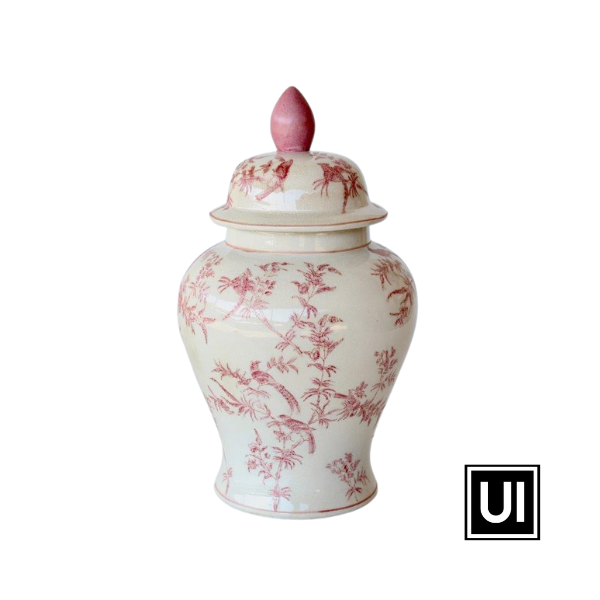 LARGE PINK FLORAL GINGER JAR 42X23CM