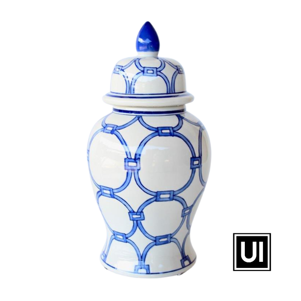 MEDIUM BLUE & WHITE CIRCLES GINGER JAR 35X17CM