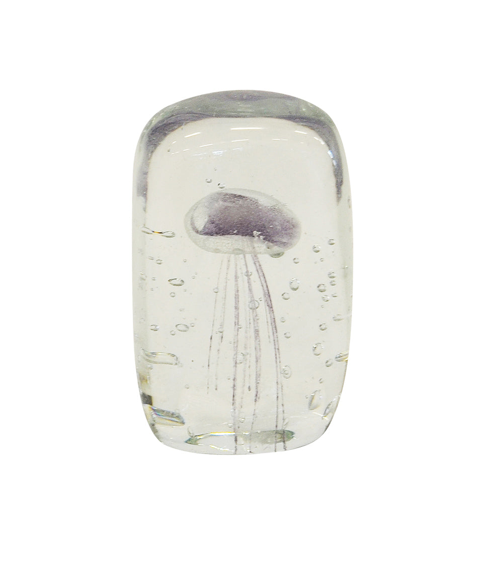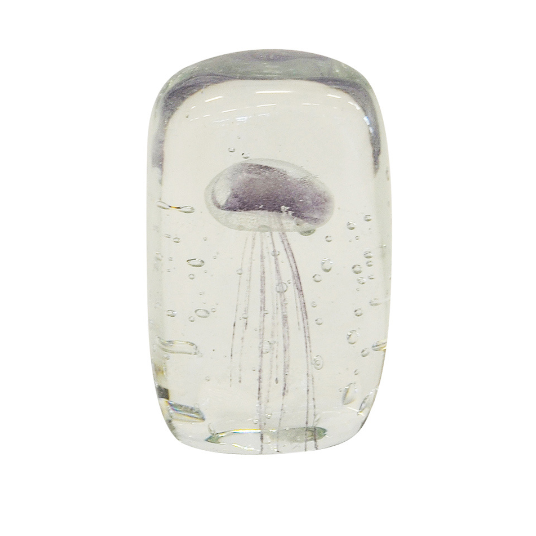 Bring a splash of color and sophistication to your interior decor with this exquisite 12cm square paperweight. The lilac jellyfish design, set against a backdrop of speckled glass, creates a unique and captivating visual effect. Perfect for adding a touch of personality to your office or living space.