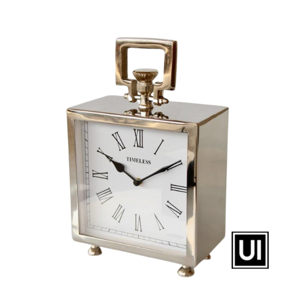 This elegant silver table clock measures 32x20x11.5cm, making it an ideal addition to any space - with its melodic ticking sound, you'll always know the time!