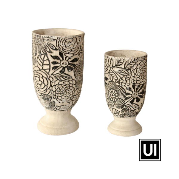 This large tall black and white patterned planter on foot is a great addition to any home; it adds texture to any dull area with its 33 cm by 17 cm size.