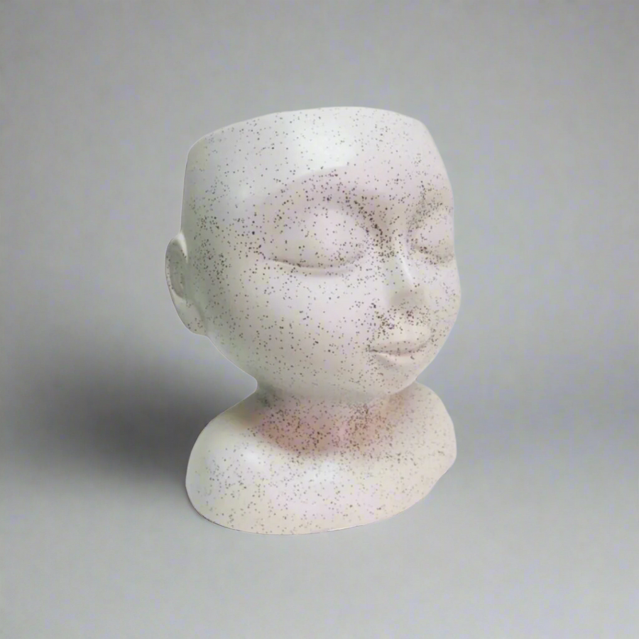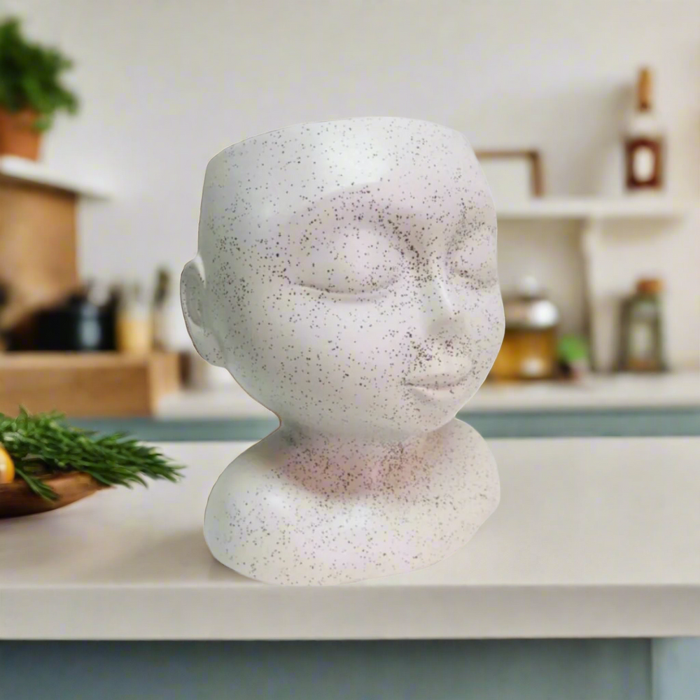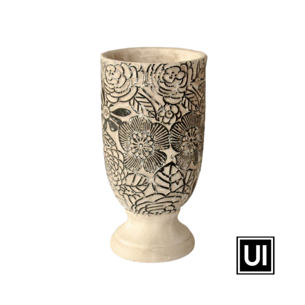 LARGE TALL BLACK & WHITE PATTERNED PLANTER ON FOOT 33X17CM