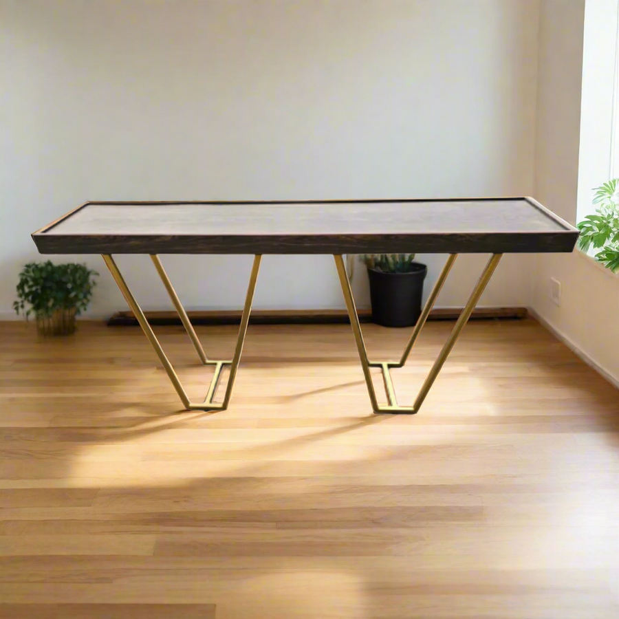 The Gold Metal Modern-W Server is a luxurious and modern piece of furniture crafted with semi-solid Kiaat wood and finished with a Rubio monocoat sealant in black. Here are the key features: