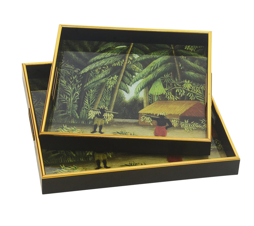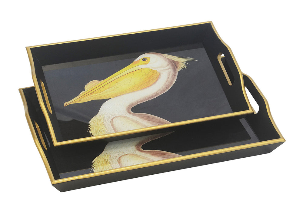 GLASS WOOD TRAY RECTANGLE PELICAN S/2
