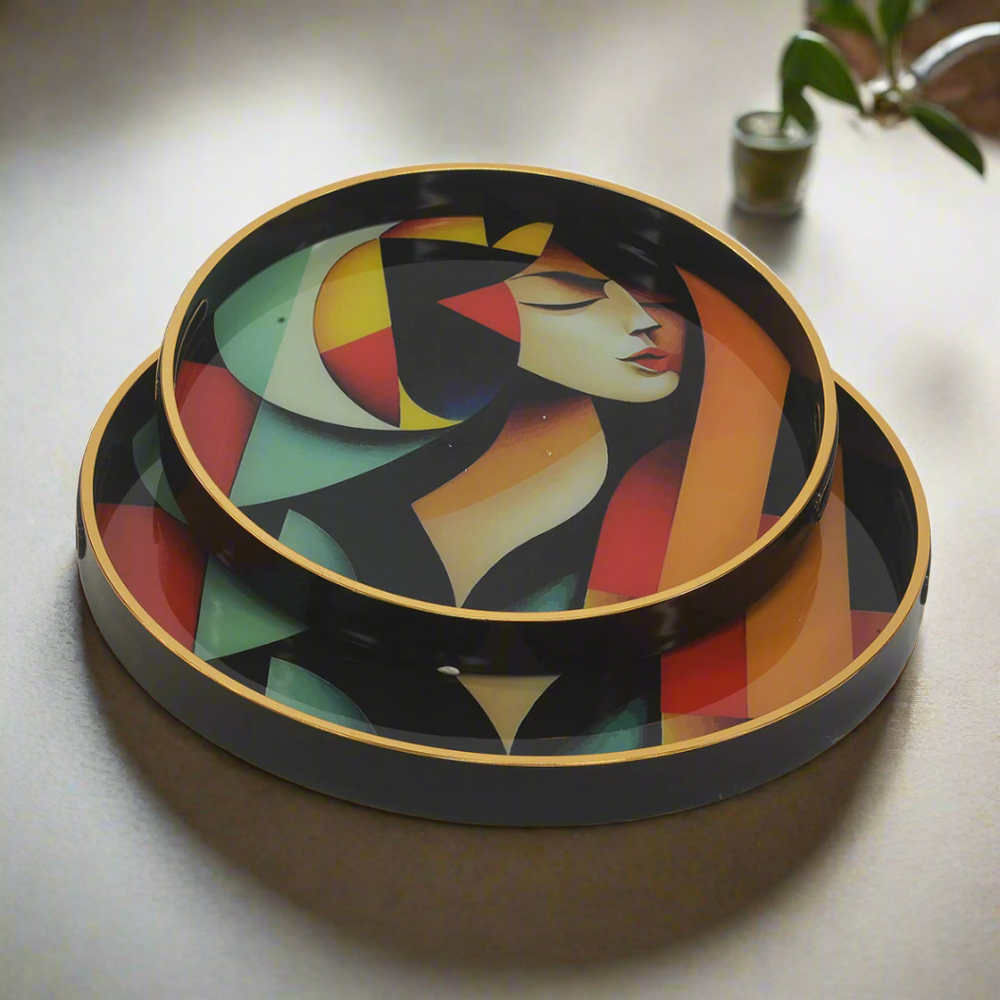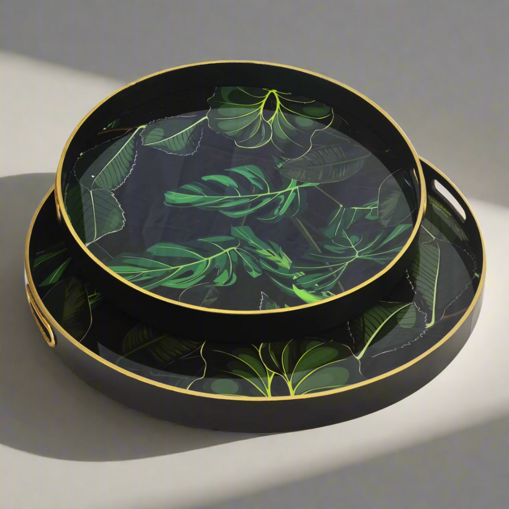 GLASS TRAY ROUND ESCAPE SET OF 2