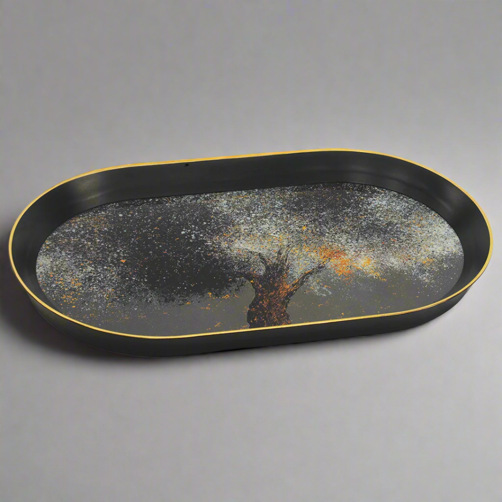 Illuminate your space with the exquisite Oval Moonlight Glass Tray, expertly crafted for sophistication and elegance.
