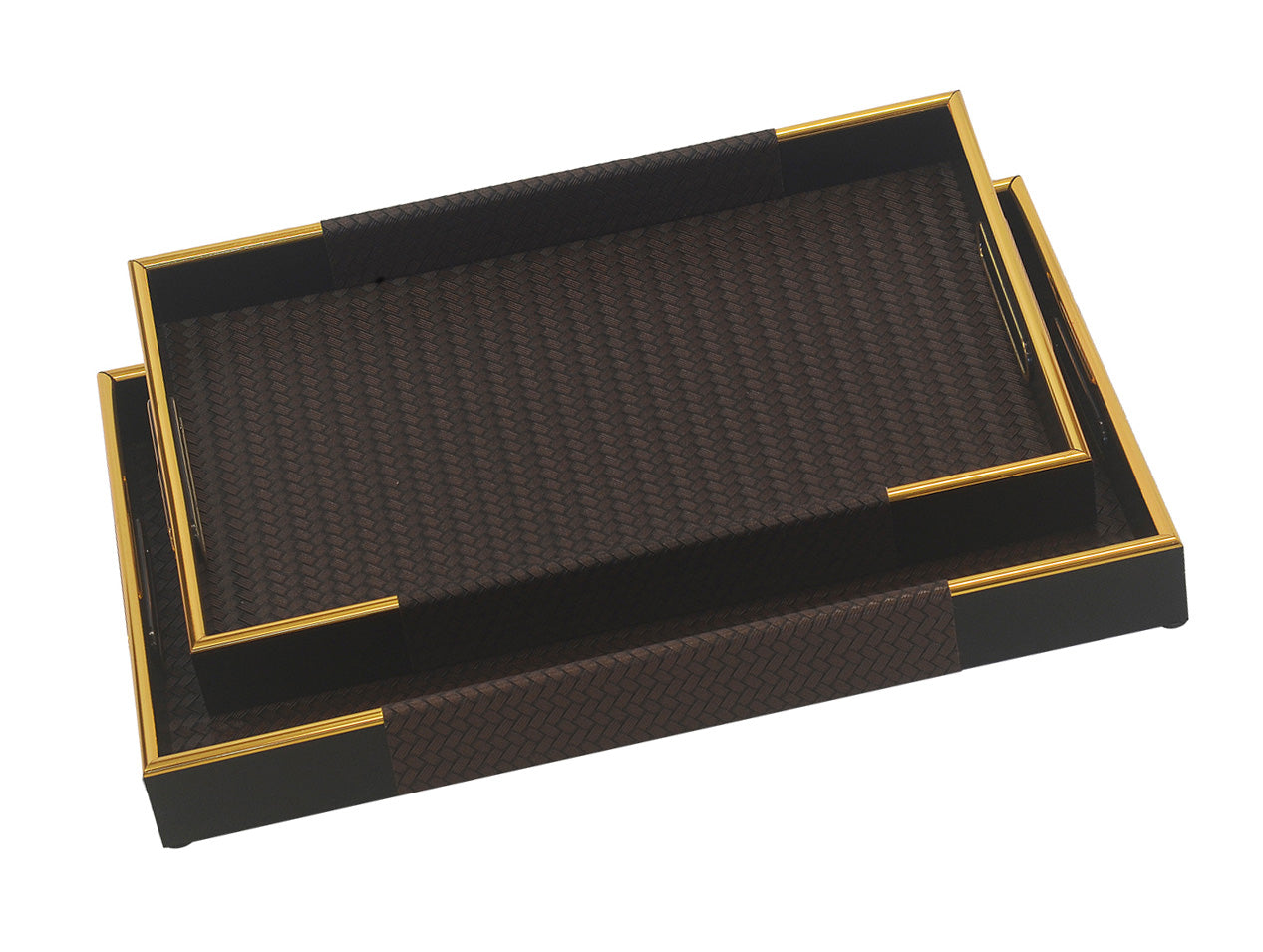 TRAY RECTANGLE PU LEATHER BROWN S/2