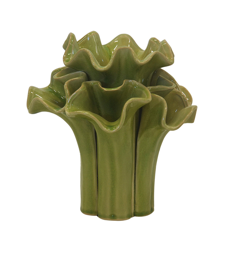 This 22CM (H) X 20CM (D) ceramic broccoli votive in GREEN is a unique and stylish addition to any home decor. Its intricate design and durable material make it a beautiful and functional accent piece. Enjoy the calming ambiance created by the candlelight shining through the intricately crafted broccoli detail.
