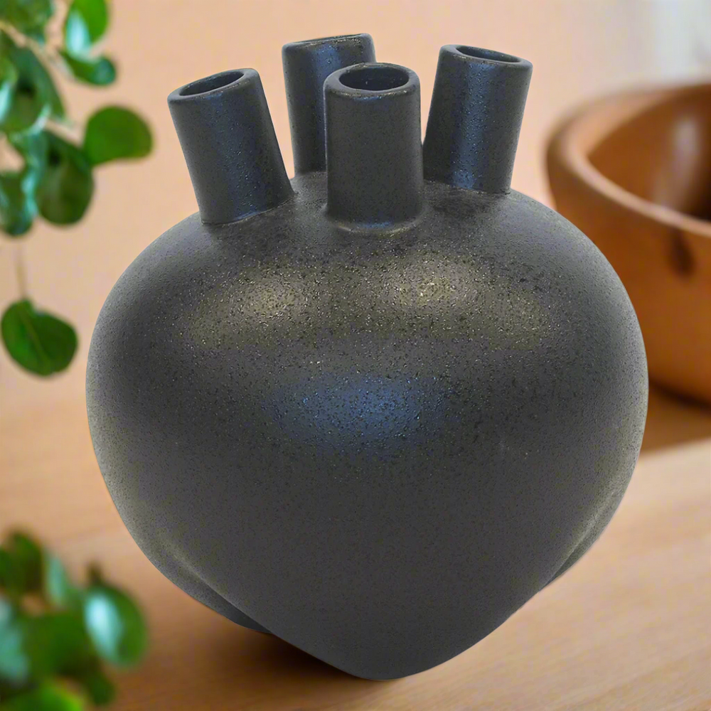 Elevate your home decor with this stunning ceramic Eyo vase in sleek black. Expertly crafted, its modern design adds sophistication and style to any room.