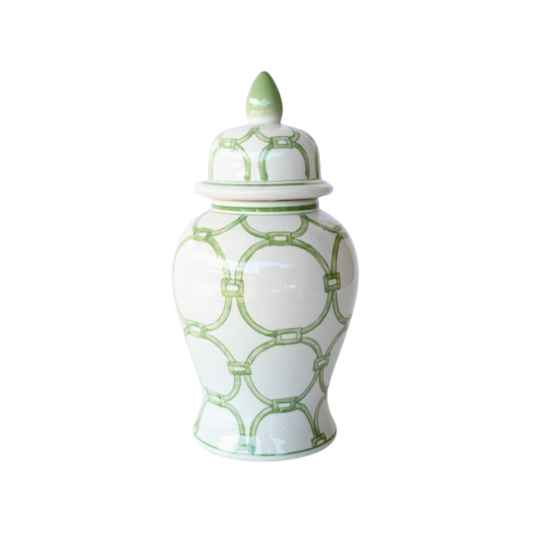MEDIUM GREEN & WHITE CIRCLES GINGER JAR